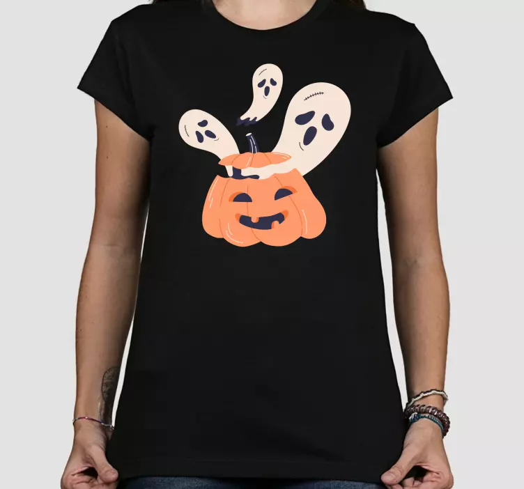 Esittelyssä Iloinen kurpitsayllätys t-paita halloweeniksi, joka tuo iloa syksyn juhliin! Tämä graafinen suunnittelu esittelee kurpitsan, joka on veistetty ja aavemainen, ympärillään kummituksia ja pelottavaa tunnelmaa. T-paita on täydellinen valinta Halloween-juhliin, sillä se yhdistää sarjakuvamaisen ilmeen ja noita-teeman iloisella tavalla. Tämä juhlava ja syksyinen t-paita tuo esille iloisen ja leikkisän hengen, joka tekee siitä erinomaisen valinnan juhlapukeutumiseen!