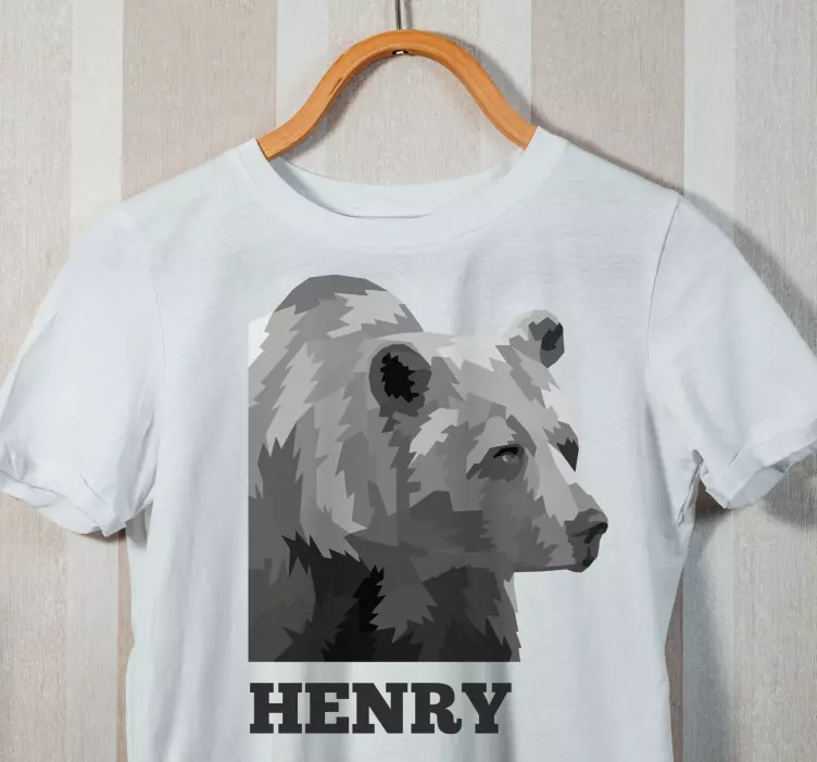 Viite: T4983Tässä suunnittelussa on karhu esitettynä geometrisessa tyylissä, mikä tarjoaa ainutlaatuisen esityksen. Nimi 'Henry' seuraa eläintä, luoden henkilökohtaisen kosketuksen. Harmaat sävyt lisäävät nykyaikaista elementtiä, mikä tekee siitä houkuttelevan laajalle yleisölle.