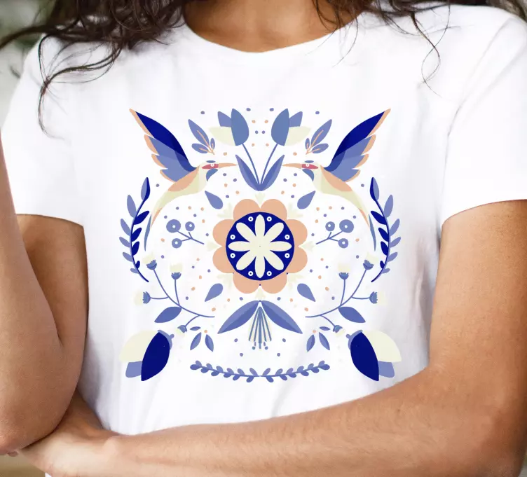 Kukkalintuaiheinen t-paita on täydellinen valinta, jos arvostat värikästä ja tyylikästä muotia, joka tuo esille luonnon kauneuden! Tämä hassu ja koristeellinen t-paita yhdistelee kansanperinnettä ja modernia designia. Sen graafinen suunnittelu esittelee lintuja ja kukkia, jotka yhdistyvät kauniisti, luoden kiiltävän ja houkuttelevan ilmeen. Tällä t-paidalla saat varmasti katseita!
