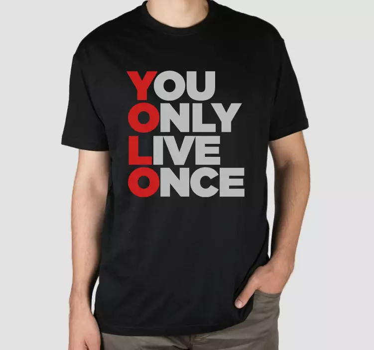 Viite: T4851Tämä rohkea vaate sisältää vaikuttavan lauseen 'You Only Live Once', korostaen elämän täysipainoista elämistä. Suunnittelussa käytetään voimakasta typografiaa ja kontrastivärejä, mikä tekee siitä silmiinpistävän ja houkuttelevan niille, jotka haluavat ilmaista elinvoimaista asennetta.