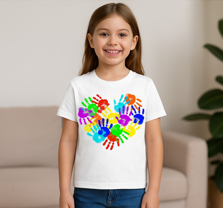 Sydämenmuotoiset kädenjäljet t-paita on loistava valinta koristeluun, sillä se tuo esiin huumorintajun ja sydämellisyyden. Tämä t-paita on kuin taideteos, joka kertoo tarinaa! Sen ainutlaatuinen sydämen muoto tuo lämpöä ja iloa käyttäjälleen, ja se on täydellinen lahjaidea läheisille. Voit yhdistää sen moniin asusteisiin, ja se sopii niin arkeen kuin juhlaan. Anna tämän t-paidan olla osa sinun ja rakkaidesi upeaa ilmettä!