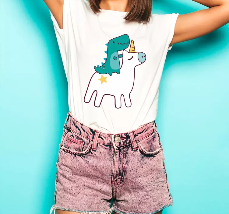 Yksisarvinen ja dinosaurus sarjakuva design t-paita