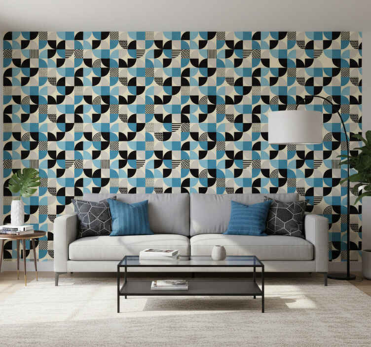 Retro sininen bauhaus-kuvio ornamentti tapetti
