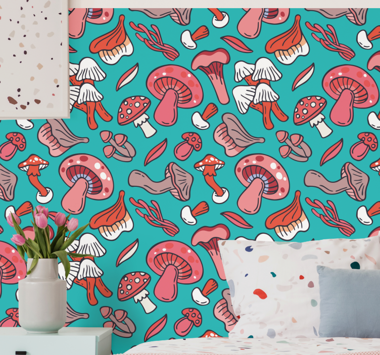 Taiteelliset punaiset sienet, joissa on sinivihreä tausta luonto