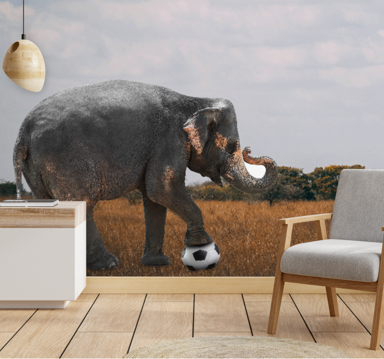 Elefantti pelaa jalkapalloa valokuvatapetti