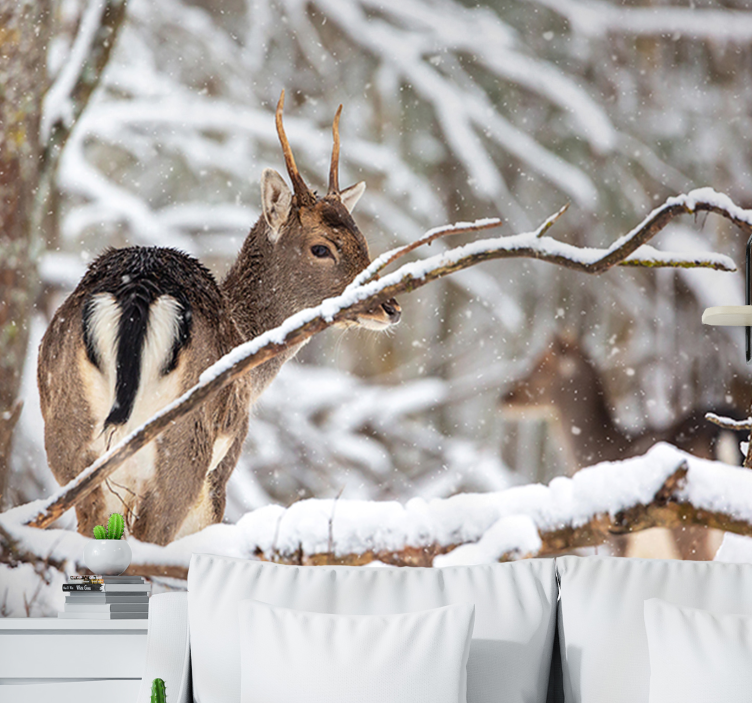 Hirvi puiden välillä metsä valokuvatapetti