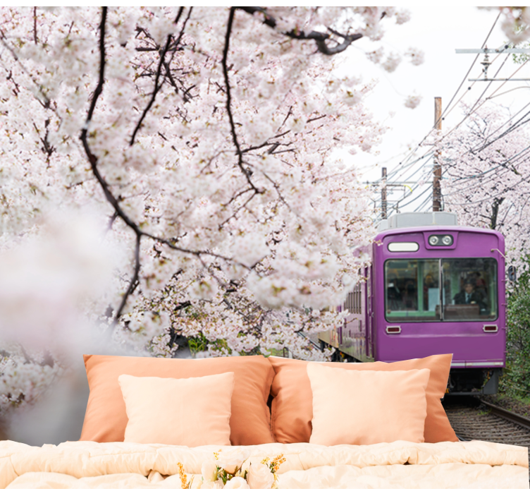 Kirsikankukkajuna kaupunkivalokuvatapetti on upea yhdistelmä luontoa ja kaupunkikulttuuria, jossa rautatie kulkee kauniiden kirsikankukkien ohi. Tämä valokuva on otettu keväällä, jolloin luonto herää eloon ja tuo eloa ympärilleen. Tämä visuaalinen taideteos tuo kotiisi raikkaan ja inspiroivan tunnelman!
