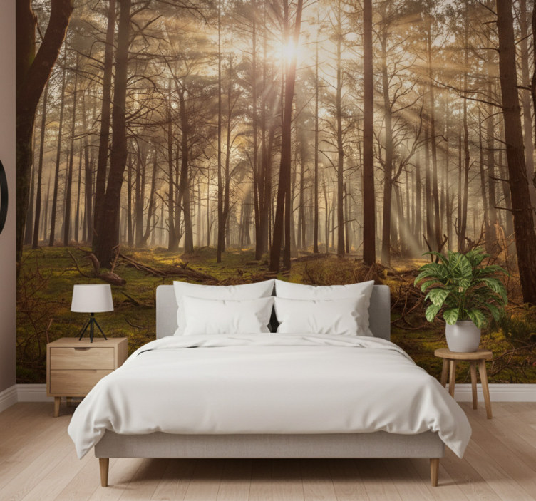 Kultainen luonto olohuone metsäv alokuvatapetti
