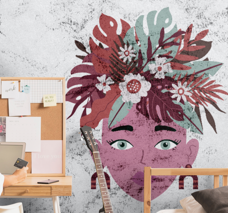 Tyylitelty kukkapää ihminen valokuvatapetti on täydellinen valinta, jos haluat luoda tilaan energisen ja inspiroivan ympäristön! Tämä ihminen valokuvatapetti ei ainoastaan kaunista seiniä, vaan myös tuo iloa ja positiivista energiaa kotiisi. Sen upea kukkakuosi ja kauniit kasvot vievät mielen maisemamatkalle, mikä tekee siitä loistavan valinnan esimerkiksi olohuoneeseen tai makuuhuoneeseen. Anna tilan elää ja kukoistaa tämän ihastuttavan tapetin avulla!