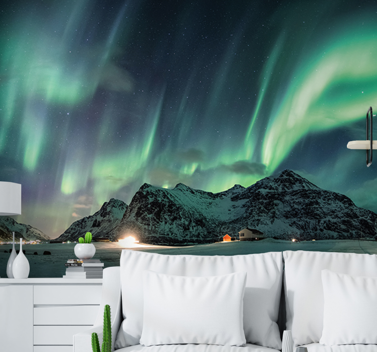 Vihreät revontulet maisema valokuvatapetti