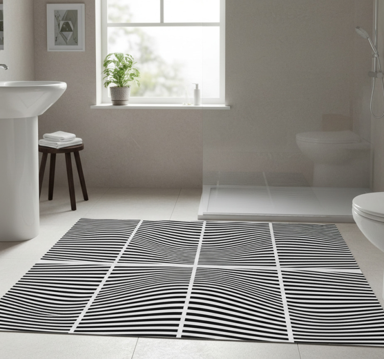 Aaltoilevat neliöt kylpyhuoneen vinyylimatto