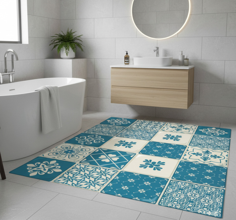 Harmaa ja sininen kuviollinen kylpyhuoneen vinyylimatto on erinomainen valinta koristeluun, sillä se tuo tilaan raikkautta ja tyyliä! Tämä kylpyhuoneen vinyylimatto ei ainoastaan näytä hyvältä, vaan se myös suojaa lattiaa ja tekee kylpyhuoneesta turvallisen paikan liikkua. Liukumaton pinta takaa, että voit liikkua huoletta, ja sen kestävyys takaa pitkän käyttöiän. Uuden maton myötä voit päivittää kylpyhuoneesi ilmeen helposti ja edullisesti! Inspiroi itseäsi ja nauti kauniista tilasta!