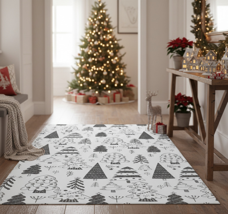 Jouluinen vinyylimatto joulukuusikuvioilla