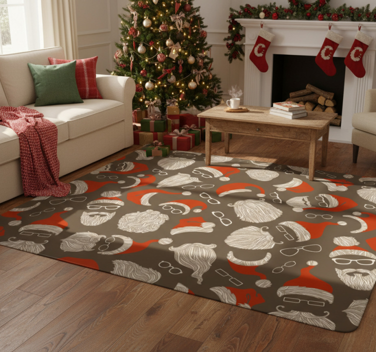 Jouluinen vinyylimatto joulupukin kasvokuvioilla
