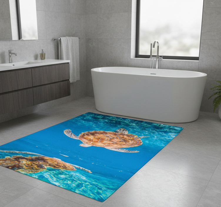 Kaunis kilpikonna veden alla kylpyhuoneen vinyylimatto