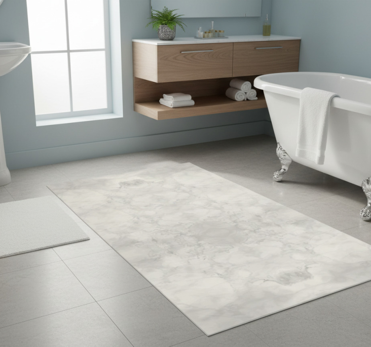 Kylpyhuoneen vinyylimatto harmaalla marmoripinnalla