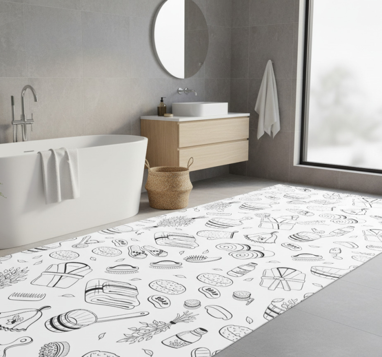 Kylpyhuoneen vinyylimatto ja tarvikkeet