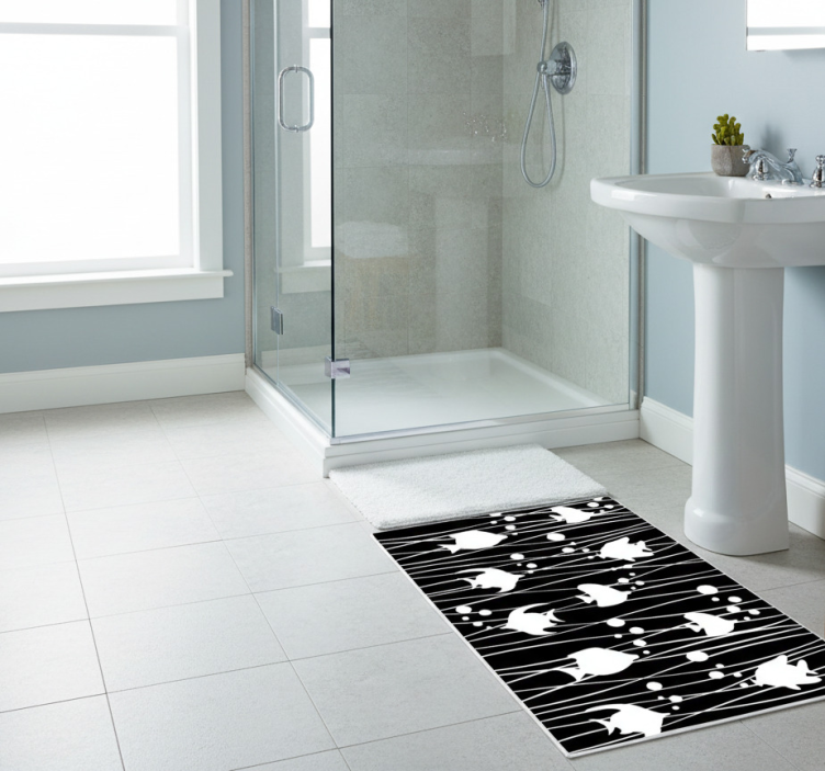 Kalat ja kuplat kylpyhuoneen vinyylimatto