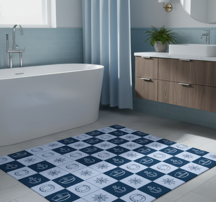 Kylpyhuoneen vinyylimatto meri-symbolit laatat