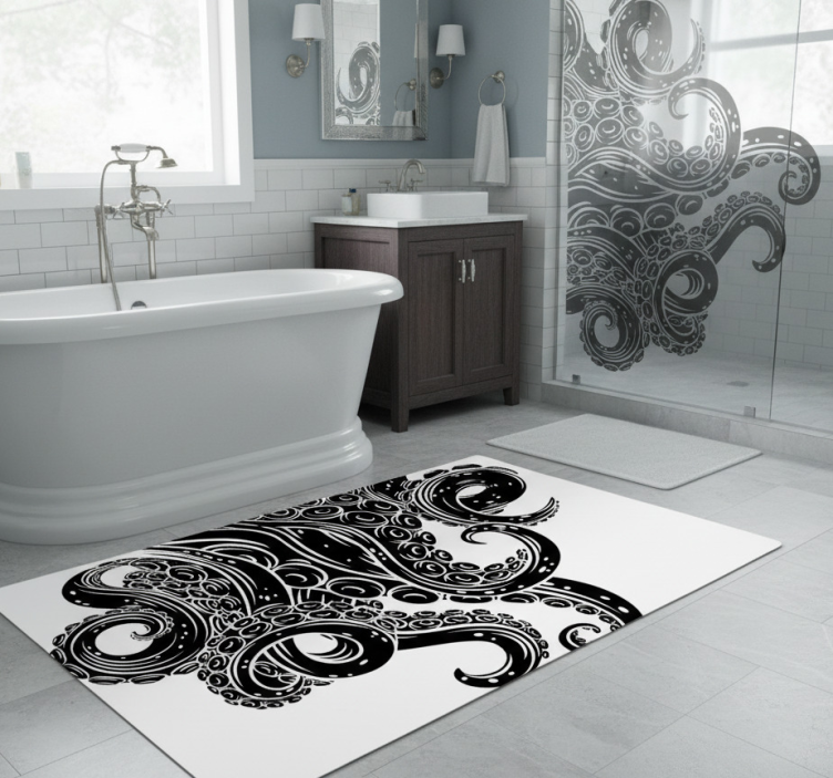 Valitsemalla Kylpyhuoneen vinyylimatto mustekalan lonkeroilla kylpyhuoneen vinyylimatto, saat ainutlaatuisen designin, joka herättää tilan henkiin! Tämä matto on loistava valinta, sillä se yhdistää kauniin visuaalisen ilmeen käytännöllisyyteen. Se on helppo puhdistaa, liukumaton ja suojaa lattiaasi. Lisäksi maton antiallergiset ominaisuudet tekevät siitä turvallisen vaihtoehdon kaikille perheenjäsenille. Miksi tyytyä tavalliseen, kun voit valita jotain niin erityistä ja inspiroivaa?!