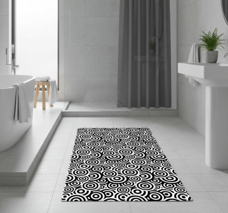 Kylpyhuoneen vinyylimatto pyöreäkuvioisena