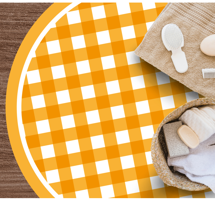 Viite: R19703Vibrantti, lämmin ruudullinen kuvio sisältää vuorotellen oransseja ja valkoisia neliöitä, luoden leikkisän mutta rauhoittavan vaikutelman. Suunnittelu on ympyrän muotoinen, ja sitä reunustaa vahva oranssi ääriviiva, mikä lisää iloista visuaalista ilmettä, joka erottuu.
