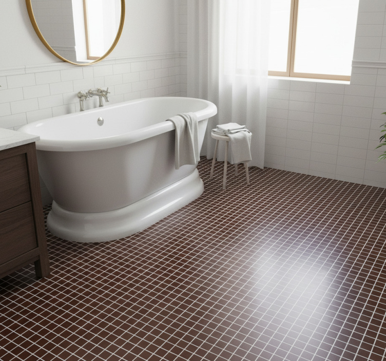 Pienet suklaanruskeat mosaiikit kylpyhuoneen vinyylimatto