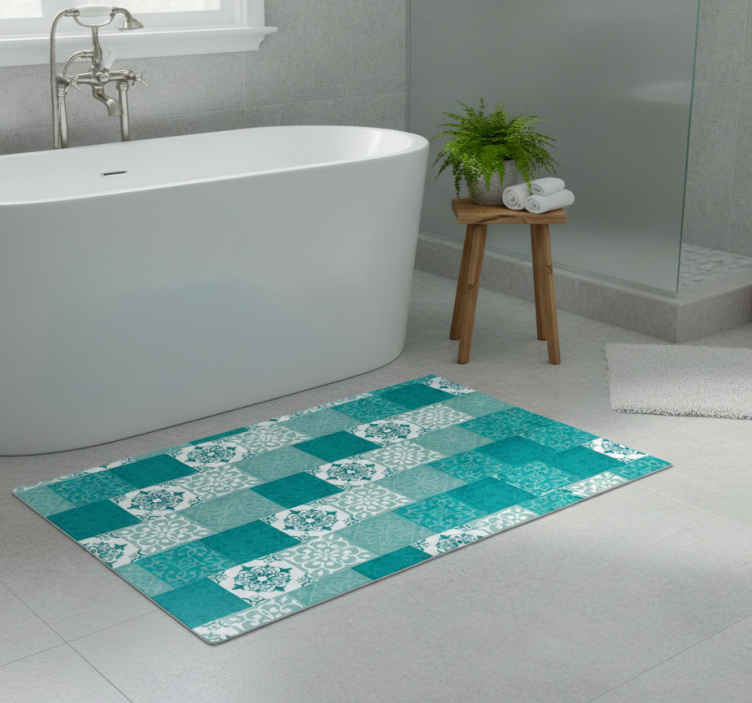 Puhdistaminen on vaivatonta: turkoosi laatta kylpyhuoneen vinyylimatto voidaan pyyhkiä kostealla liinalla tai käyttää mietoa puhdistusainetta. Tämä kylpyhuoneen vinyylimatto kestää hyvin päivittäistä käyttöä ja pysyy kauniina pitkään!
